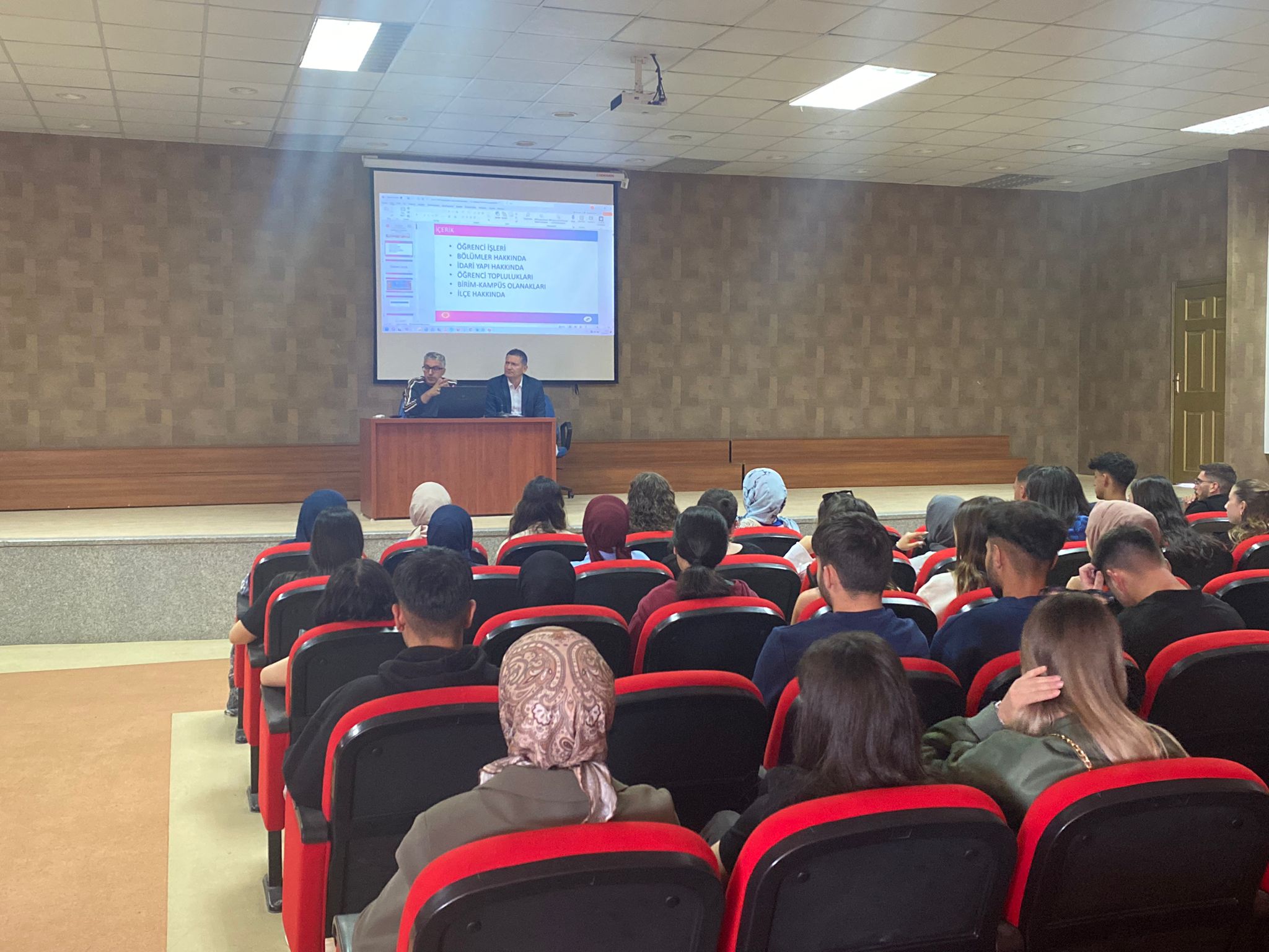 2025- 2026 Eğitim Öğretim Yılında Yüksekokulumuz tarafından yeni kayıt yaptıran öğrencilere üniversite yaşamına uyum sağlamalarını kolaylaştırmak amacıyla Müdür Yardımcısı Dr. Öğr. Üyesi Kürşad ÖZKAYNAR ve Öğr. Gör. Murat DURFGUN' un sunumuyla "Öğrenci Oryantasyon Programı" gerçekleştirilmiştir. Program kapsamında; öğrencilerimize akademik takvim, ders kayıt süreçleri, sınav sistemi hakkında bilgilendirme, akademik ve idari işleyişe ilişkin tanıtımların yapılarak akademik kadronun ve eğitim programlarının tanıtılması, danışmanlık hizmetleri kapsamında sunulan akademik, psikolojik ve sosyal destek mekanizmalarının öğrencilere aktarılması, öğrenci toplulukları, sosyal etkinlikler ve kulüp faaliyetleri konularında bilgilendirilme yapılmıştır.