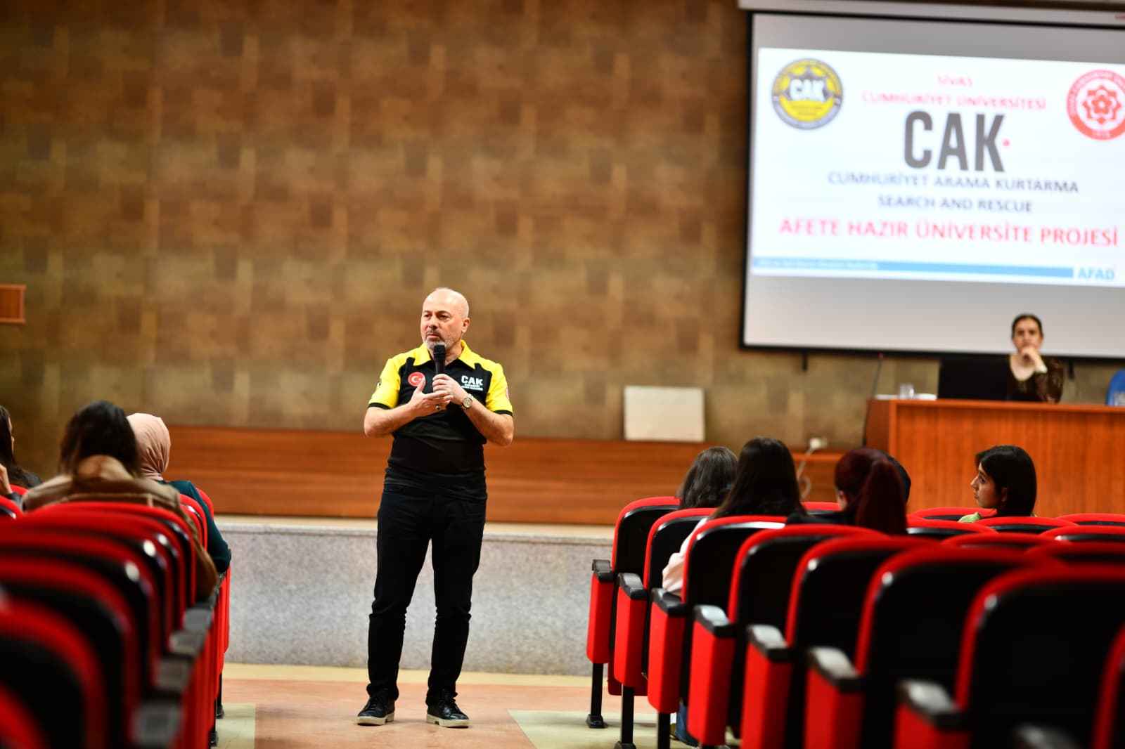 ''Afete Hazır Üniversite'' projesi kapsamında düzenlenen ''Afet Bilinci'' seminerleri,15 Nisan 2026 tarihinde saat 11.00' de Zara Ahmet Çuhadaroğlu MYO Konferans salonunda gerçekleştirilmiştir. CAK Birimi Başkanı Öğr. Gör. Kemal DEMETÇİÇEK tarfından verilen seminere,Meslek Yüksekokulumuzun akademik ve idari personelleri ile öğrenciler katılım sağlamıştır.